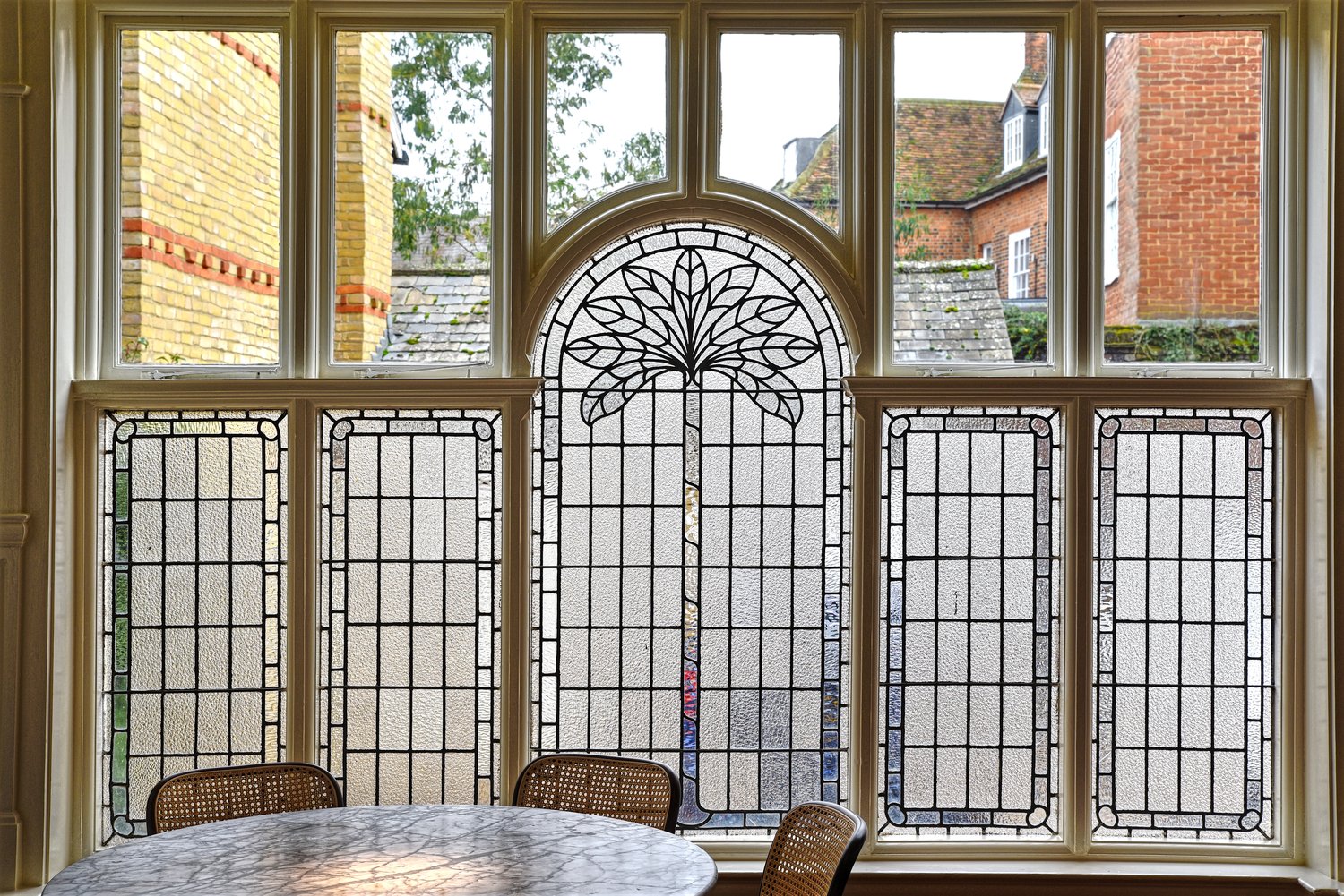 Once a furniture showroom and now occupied by Lussmanns restaurant, the rear of this 200 year-old building features a pair of ornate windows.