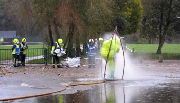 Firemen wearing protective clothing were seen outside the building, with specialist washing equipment operating on site.