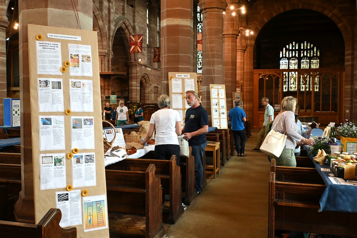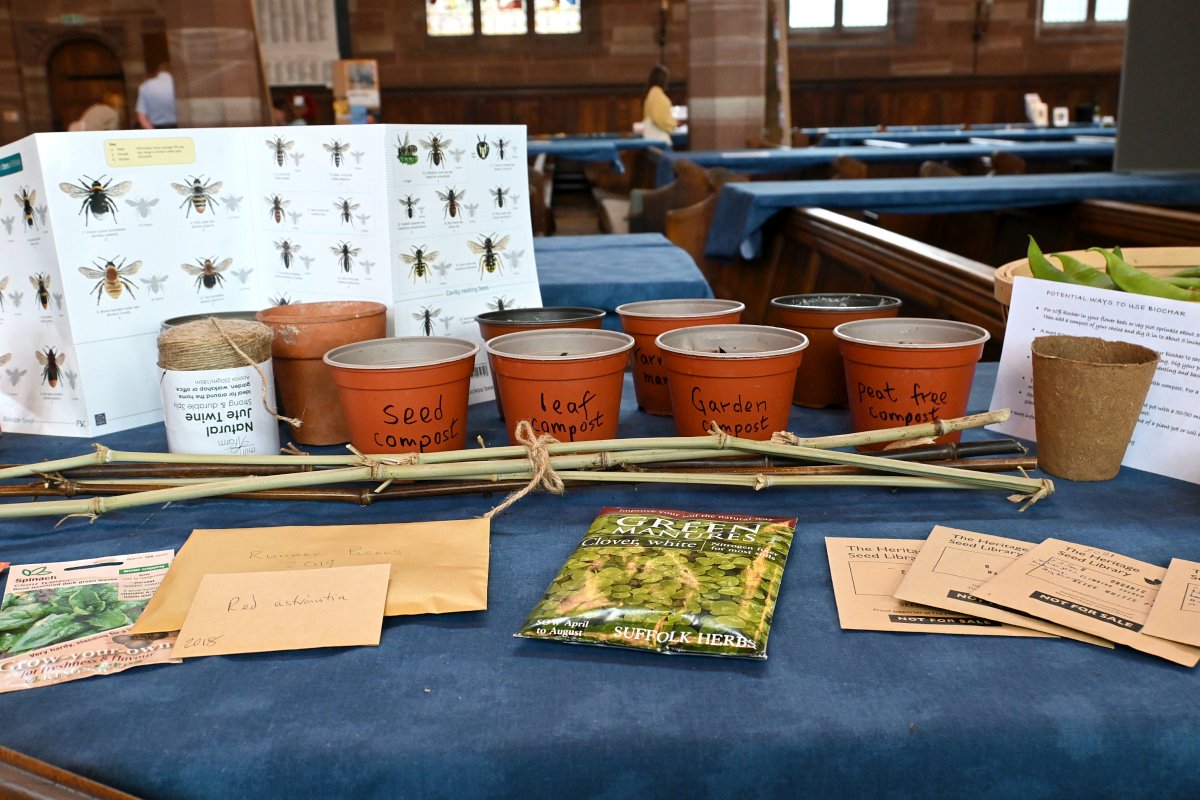 The main church hosted stalls and displays exploring many aspects of the environment, climate and hope; including pond making, hedge-laying, bird watching, insects, climate friendly gardening, growing your own food, how to deal with waste, and living sustainably.