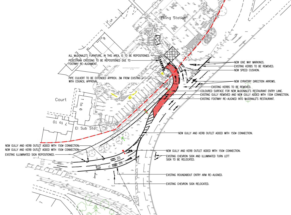 The fast food chain has submitted a planning application to realign the junction and introduce an additional lane for vehicles using the drive-though service.