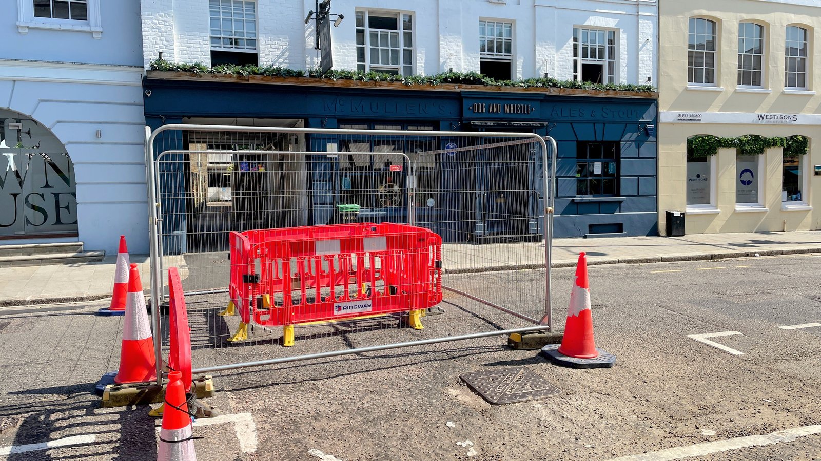A void appeared in the road at Fore Street, Hertford, over the weekend and whilst a temporary repair was carried out the void has reappeared. Further assessment today has found the road is not safe to use so we have now had to take the decision to close Fore Street to traffic while emergency inspection and repairs takes place. There is no vehicle access, however the footpath remains open to pedestrians and homes and businesses remain accessible on foot.