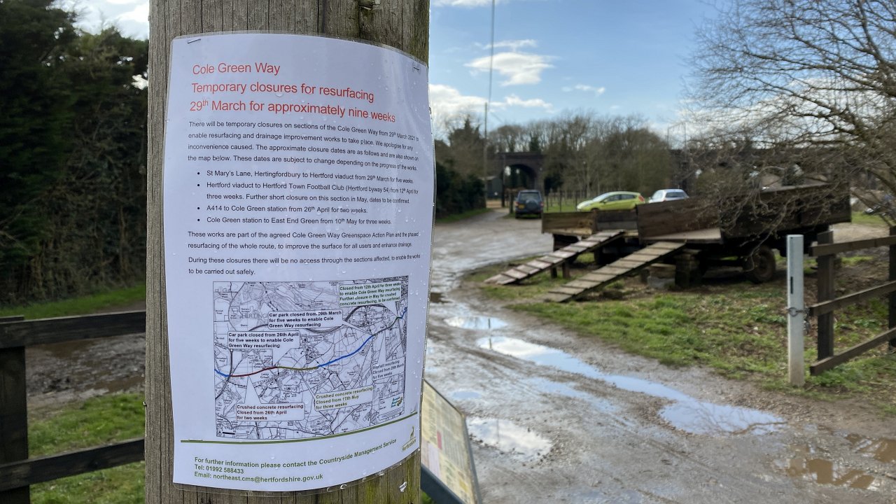 The car parks at in St.Mary's Lane in Hertfingfordbury and at Cole Green station will also close during the works, with Hertingfordbury closed from 29th March for five weeks and Cole Green from 26th April for five weeks.