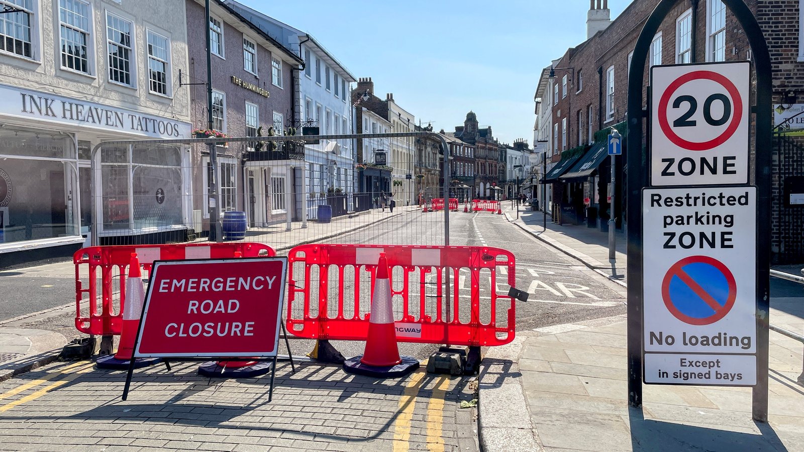A void appeared in the road at Fore Street, Hertford, over the weekend and whilst a temporary repair was carried out the void has reappeared. Further assessment today has found the road is not safe to use so we have now had to take the decision to close Fore Street to traffic while emergency inspection and repairs takes place. There is no vehicle access, however the footpath remains open to pedestrians and homes and businesses remain accessible on foot.