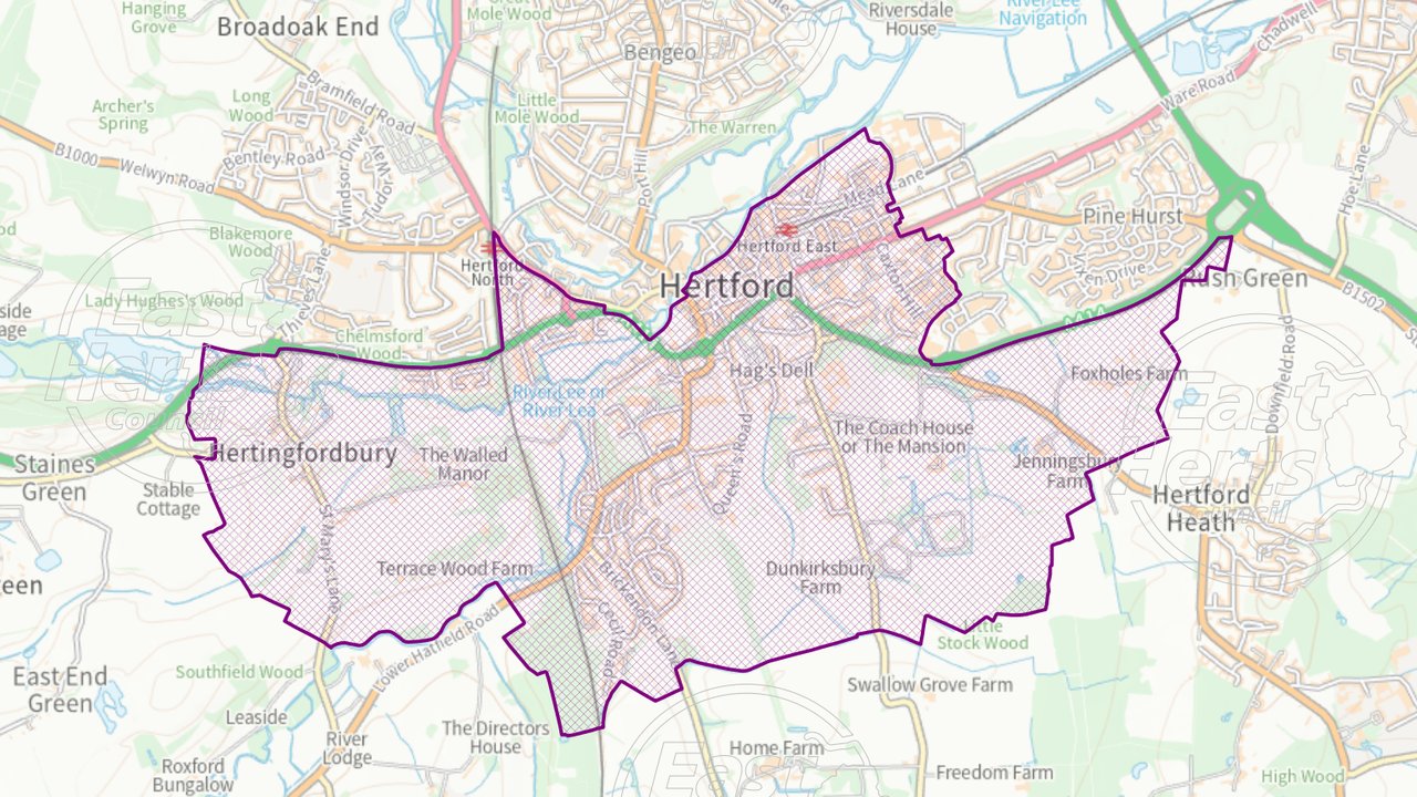 East Herts Council has received an application from Hertford Town Council for the designation of the Castle Ward, Kingsmead West Ward and Bengeo South Ward in Hertford as a neighbourhood area.