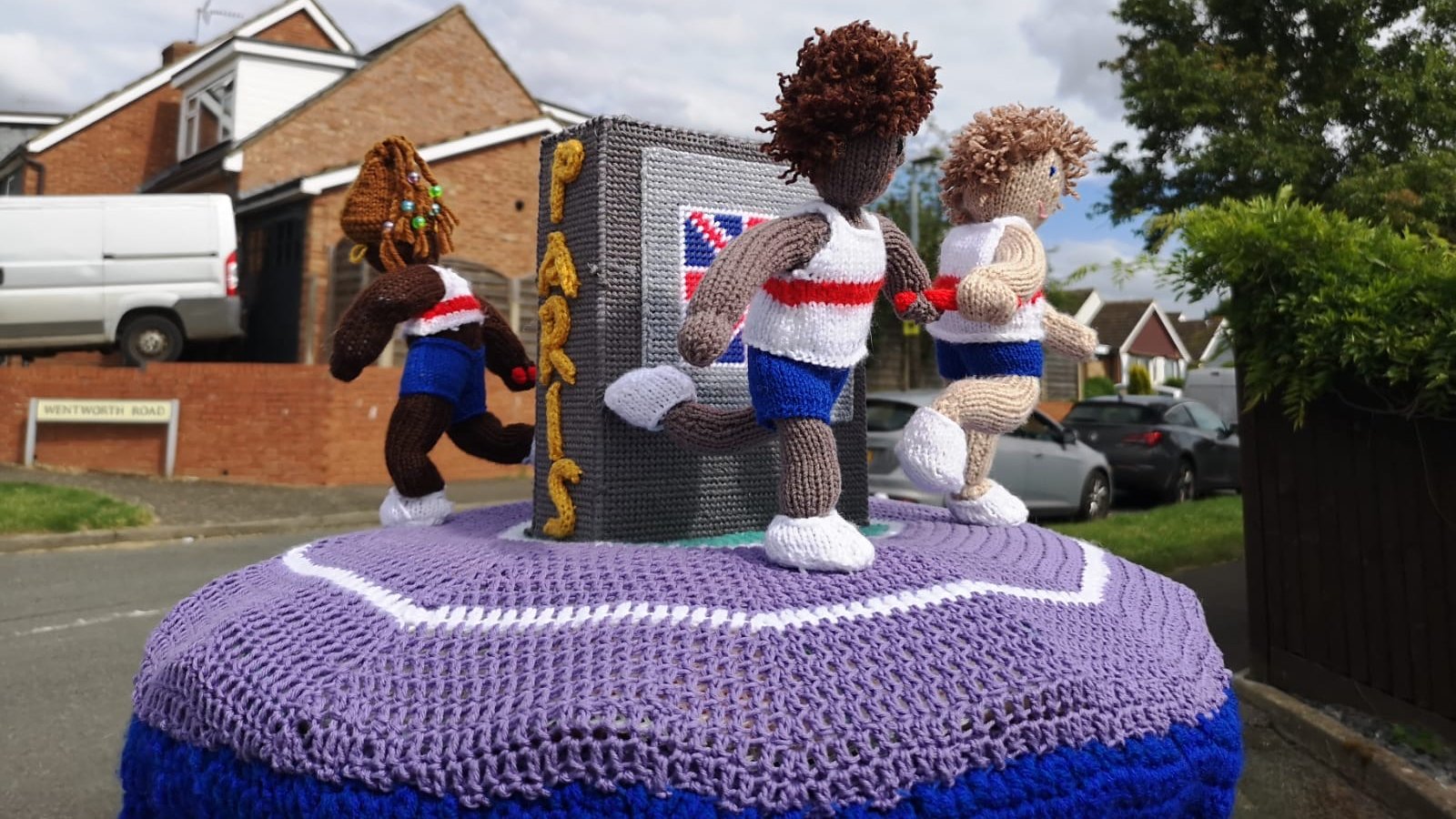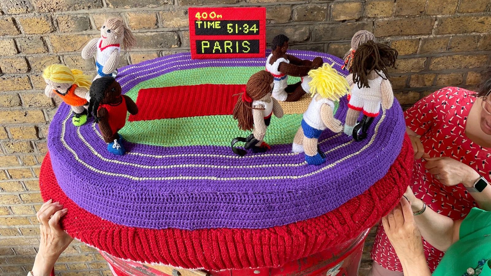 The Secret Society of Hertford Crafters has brought 26 Yarnlympic-themed Postbox toppers to Hertford featuring four key themes: Sports, Para-athletes, History and Paris.