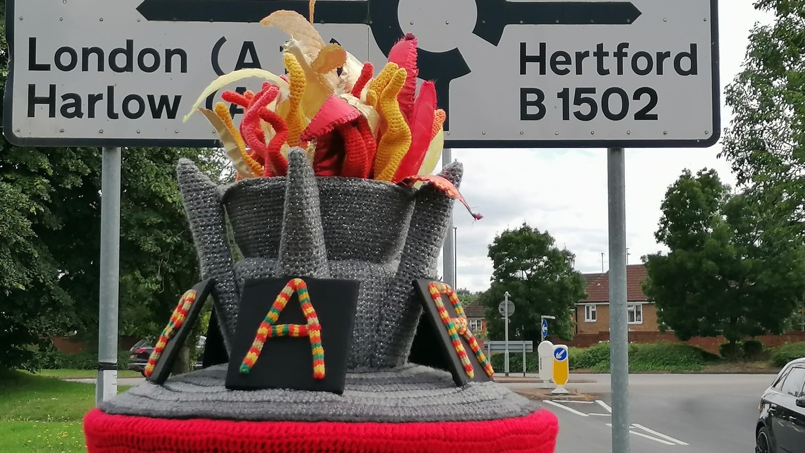 A printed copy of the quiz can be collected from the Yarnbombers’ stall in Salisbury Square, Hertford and completed quizzes may be returned there too. Quizzes may also be collected and returned at Hertford Town Tourist & Information Centre.